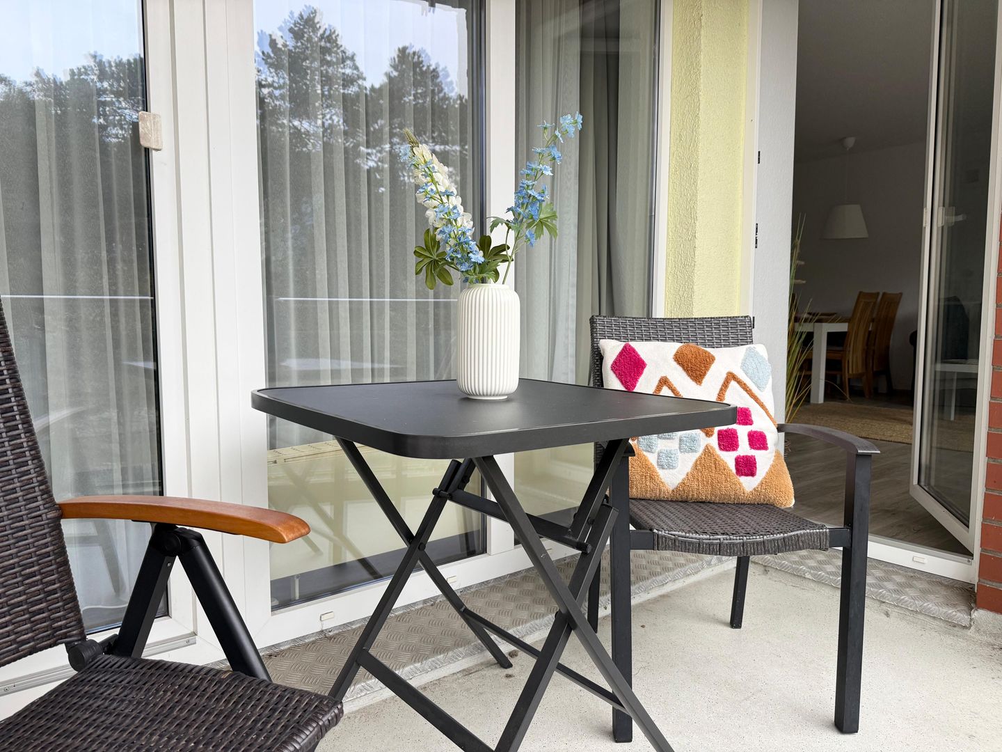 Genießen Sie die frische Seeluft auf dem möblierten Balkon mit Blick ins Grüne.