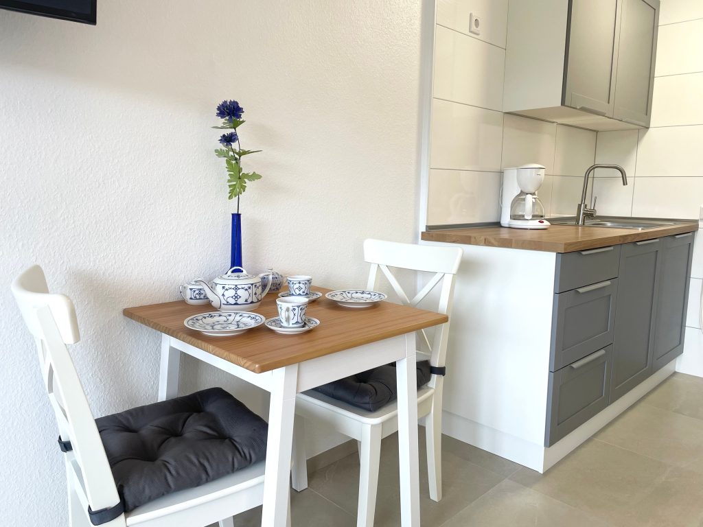 Das Studio ist mit einem Esstisch, einer modernen Küchenzeile und einem gemütlichen Schlafbereich (Bett: 160 x 200cm) ausgestattet. Die...