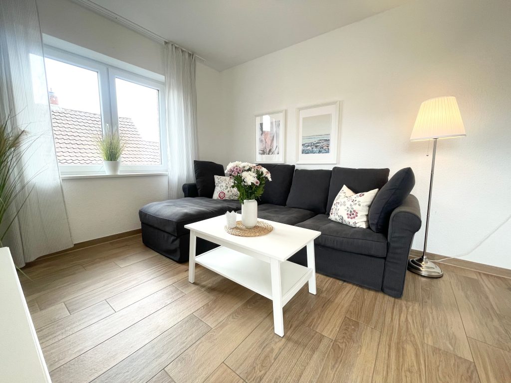 Die exklusive Ferienwohnung lässt keine Wünsche offen. Im nordischen Stil besticht sie mit ihren hellen und freundlichen Möbeln.