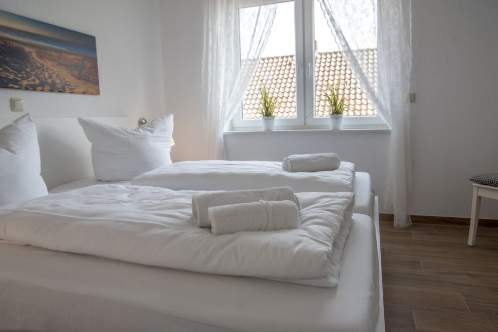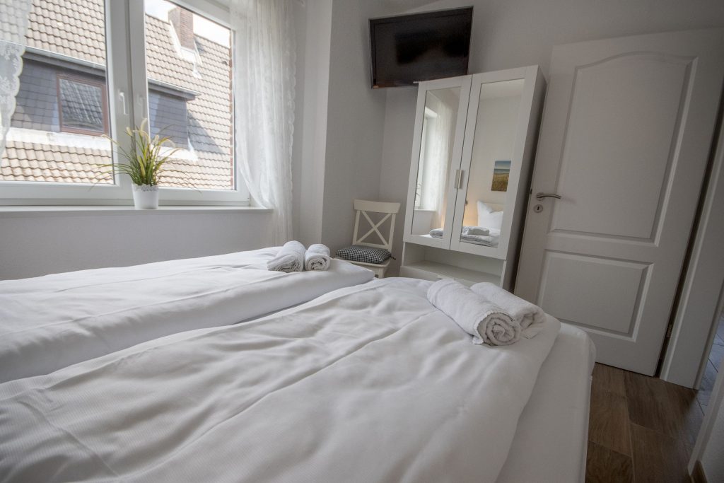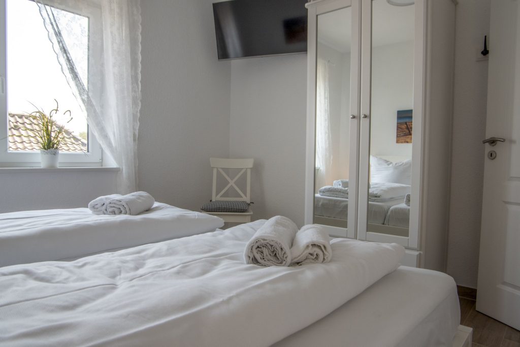 Wir, meine 84-jährige Mutter und ich, waren für eine Woche im Oktober dort und die helle und geschmackvoll eingerichtete Wohnung hat uns sehr gefallen. Wir haben uns in dem maritimen Ambiente sofort wohl gefühlt. Die Dusche im modernen Bad war auch für meine gehbehinderte Mutter sehr gut nutzbar. Die Wohnung liegt nah am Strand, so dass das Auto nur für Ausflüge in die Umgebung bewegt werden musste. Ein Parkplatz konnte dazu gebucht werden. Die Schlafzimmer sind gleichwertig eingerichtet, beide verfügen über Fernseher und die Betten waren überaus bequem. Wir können die Wohnung uneingeschränkt empfehlen und würden sie gern wieder buchen.