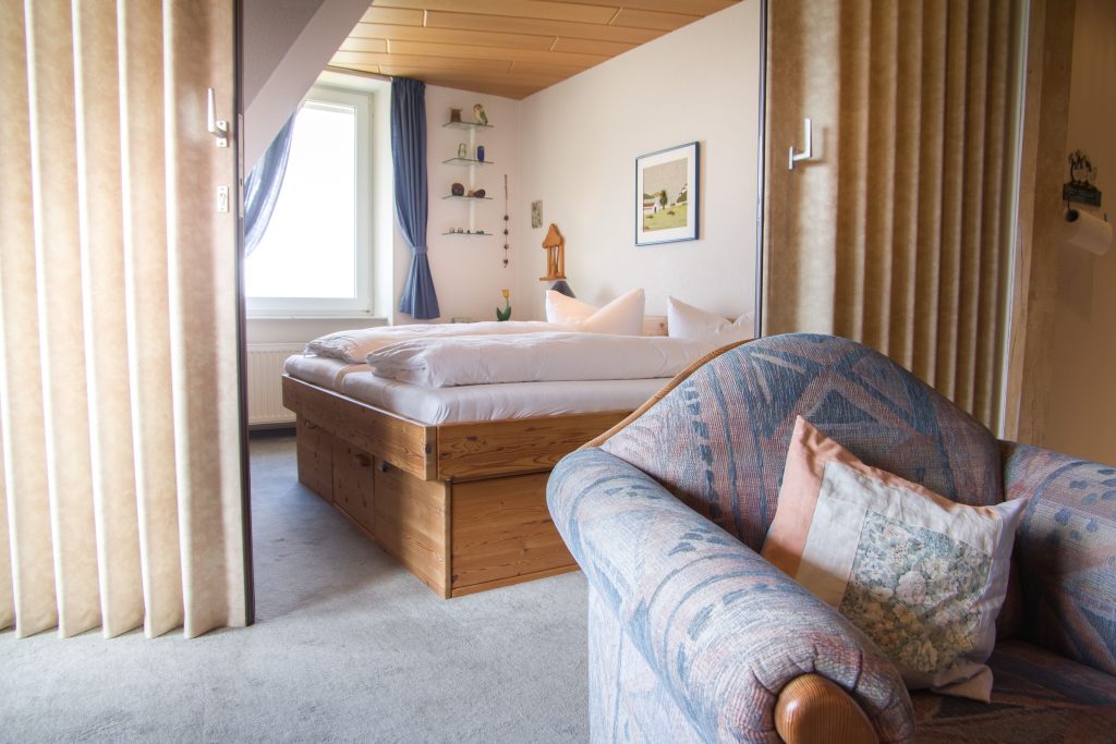 Innerhalb der Ferienwohnung ist der Schlafbereich abteilbar.