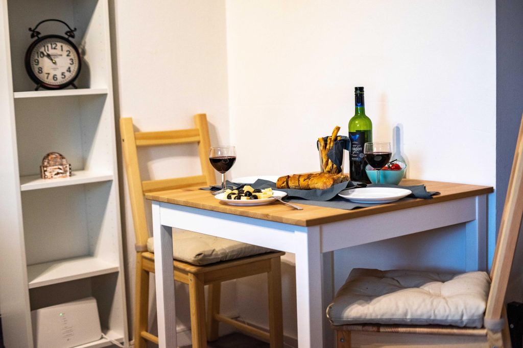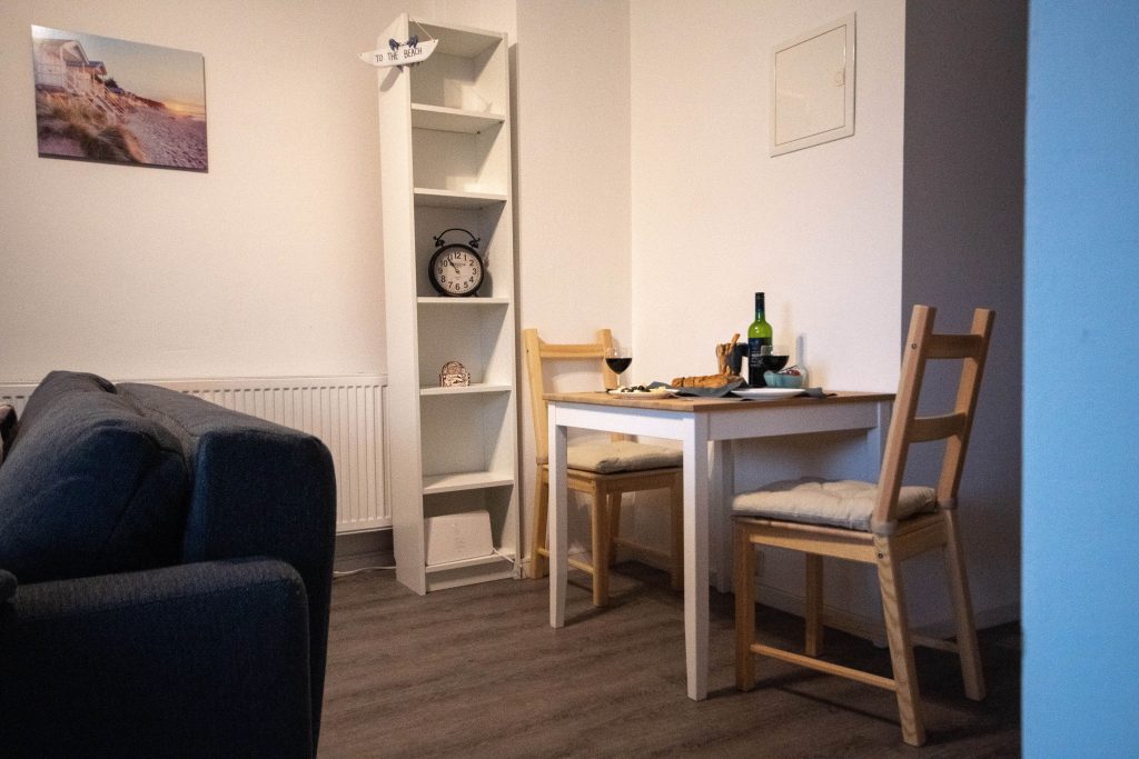 Die Ferienwohnung selbst überzeugt durch ihre freundliche und moderne Ausstattung. Sie verfügt über eine umfangreich ausgestattete Einbauküche, einen Fernseher sowie WLAN. Ihnen stehen ein separates Schlafzimmer mit Einzelbett und ein gemütliches Wohnzimmer mit Schlafcouch (ca.1,40 breit) zur Verfügung. Das komfortable Badezimmer ist mit einer Dusche ausgestattet.